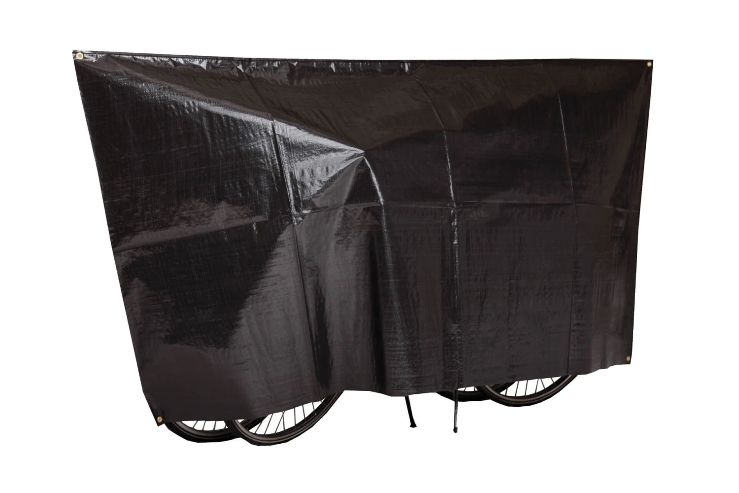 Housse de protection vélo double de la marque VK. Conçue pour protéger deux vélos de la neige, de la pluie, de la poussière, du sel ou des rayures. En plastique tissé, enduit sur une face, cette housse est ultra-résistante. Elle possède plusieurs œillets métalliques qui permettent de passer la cordelette fournie avec la housse.